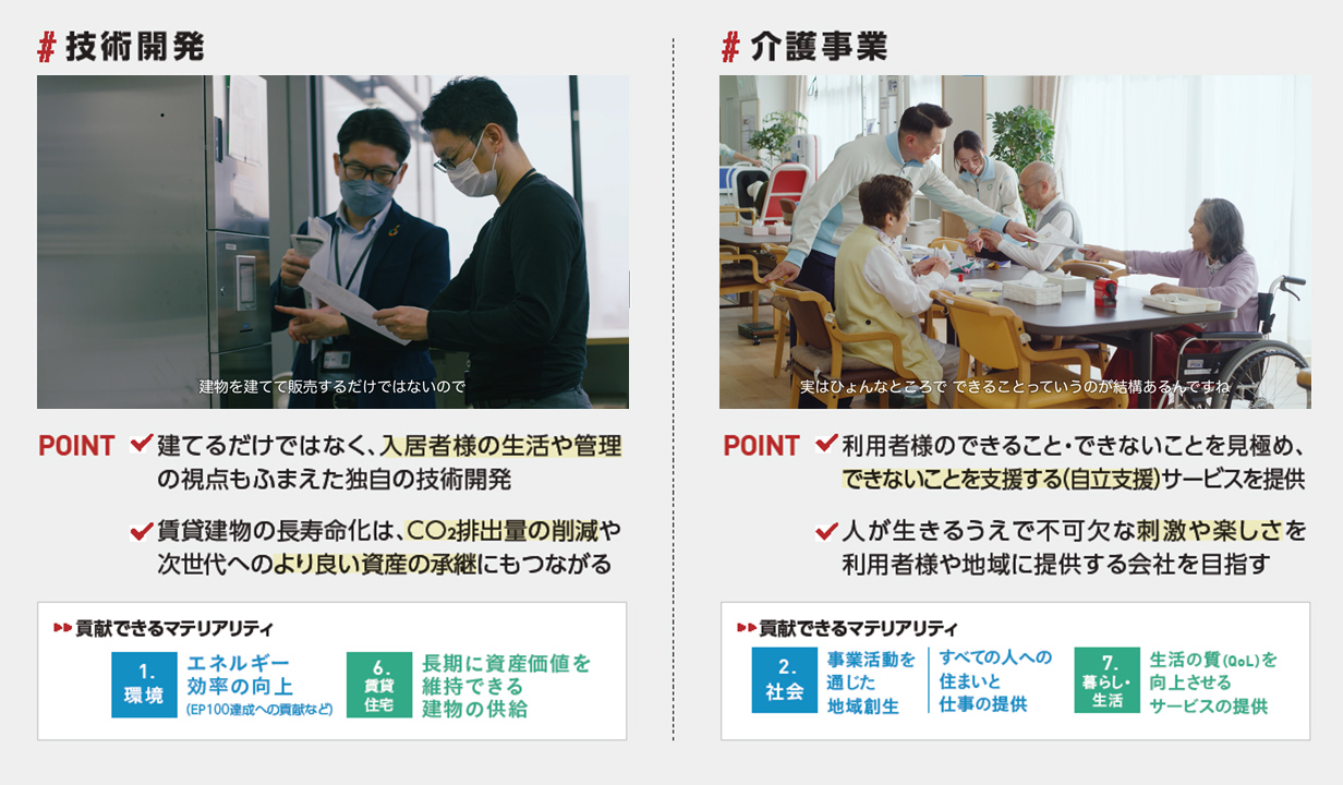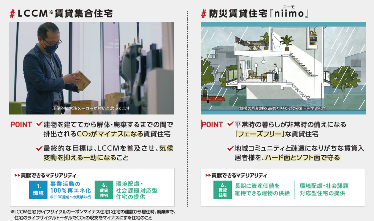 賃貸住宅専業として成長してきた当社グループだからこそ生み出せた、サステナブルな賃貸住宅商品について、その開発背景や展開にかける思いを紹介しています。