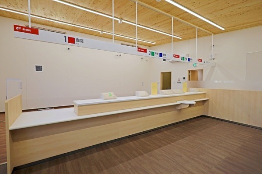 完成した郵便局の屋根には太陽光発電パネルが設置され、屋根や壁には国産材CLT※が活用されるなど、当社が賃貸住宅事業で培ったノウハウを生かすことで、日本郵便の目指すビジョンの実現に協力させていただきました。