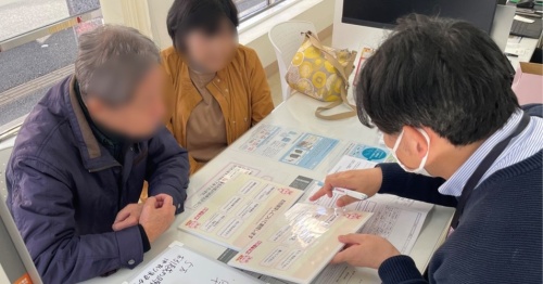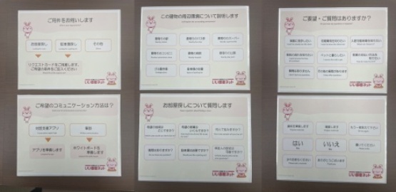・製作したコミュニケーション支援ボードを使用し、いい部屋ネット佐賀駅前店で聴覚障がい者のお客様のお部屋探しをお手伝い