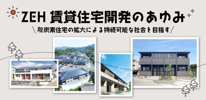 当社は、戸建て住宅において普及が始まったZEHという考え方を、賃貸住宅にも応用したい、日本のエネルギー需給の抜本的改善に一役買いたい、そして環境に優しい賃貸住宅を作りたい、という想いで、2017年11月に国内初となるZEH賃貸住宅を完成させました