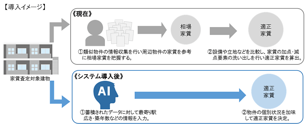 従来の家賃審査システムでは、類似物件の情報収集とその登録作業が必要であり、システムへ審査条件を手動で設定していた為、適性家賃を導き出すのに多くの時間を要していました。