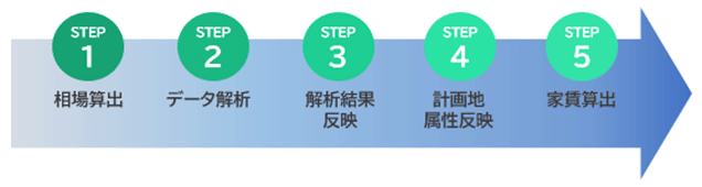 これらの問題を解決させるために「スマサテ」を開発し、AIによる適正賃料の算出と資料作成を瞬時に行う事を可能としました。