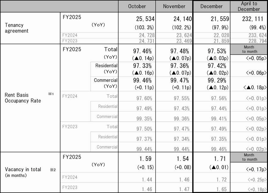 *1 Rent basis as occupancy rate = 100% - {(Lease fee payment for vacant rental housing) / (Aggregate amount of rent [%])}