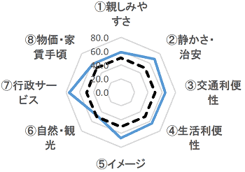 ・高級志向で、オシャレな街である都心部への交通の便がよい。緑が多く、病院や公園が多い。(女性・40歳・未婚・パート)