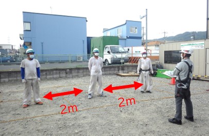 8.朝礼・昼礼時:現場従事者同士の一定距離を確保して実施しています。