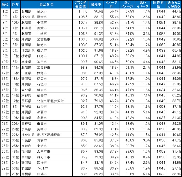 自治体ブランドランキング トップ3は「石川県金沢市」「神奈川県鎌倉市」「北海道小樽市」