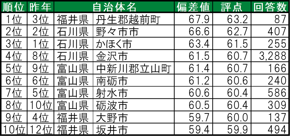 【住み続けたい街(自治体)ランキング<北陸版>】