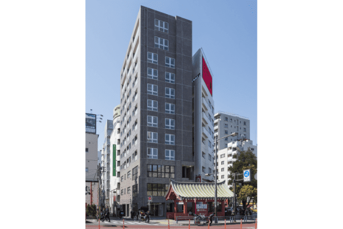 規則正しい矩形のフォルムが明治通り沿いの街並みに洗練された個性を放つ