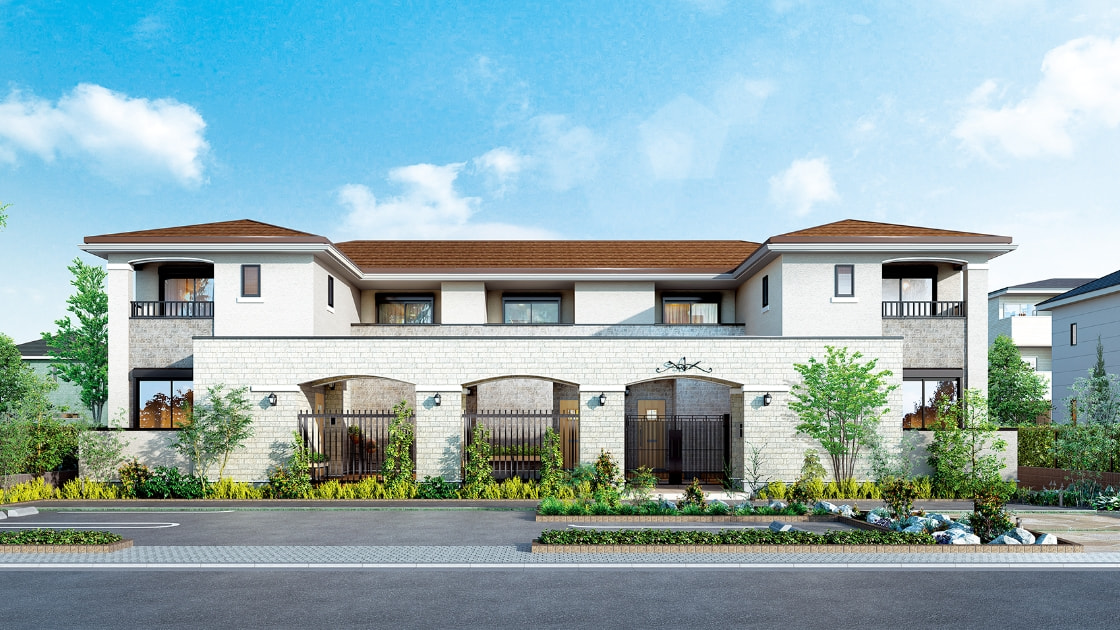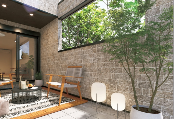 プライバシーを確保した専用のテラス(1階)は、中と外をゆったりとつなぎます。テラスでペットとくつろいだり、アウトドアリビングとして、思い思いのひとときを過ごせる心地よい空間です。