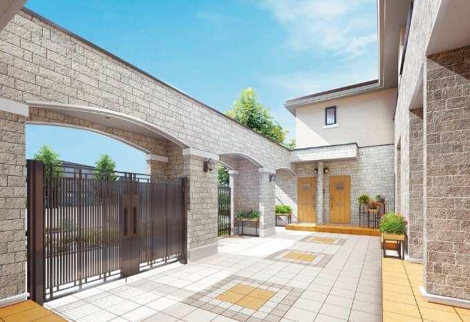 入居者様間のコミュニケーションがはぐくまれる、防犯に配慮されたエントランスコート
