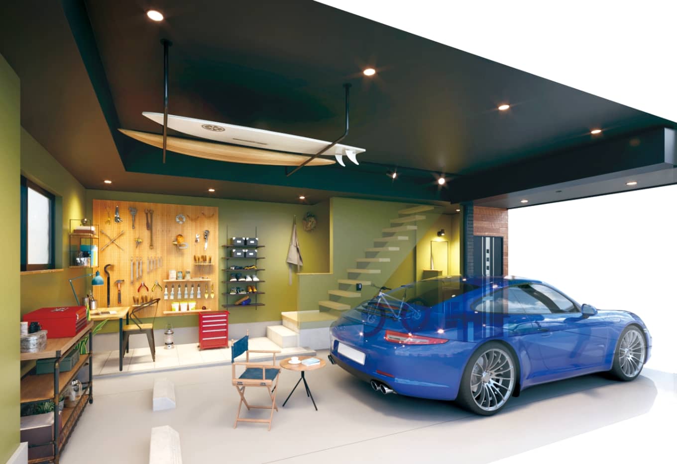 建物1階部分のガレージは「楽しい」に没頭できる自分だけの特別な空間。