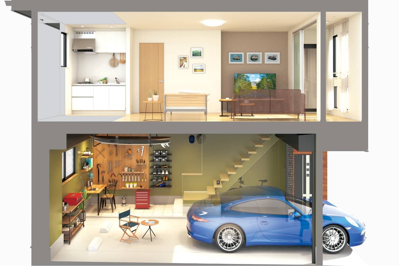 趣味や仕事を楽しくするガレージ付き賃貸住宅。