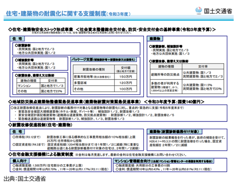具体的に、住宅建築物の耐震に対する支援制度をみてみましょう。